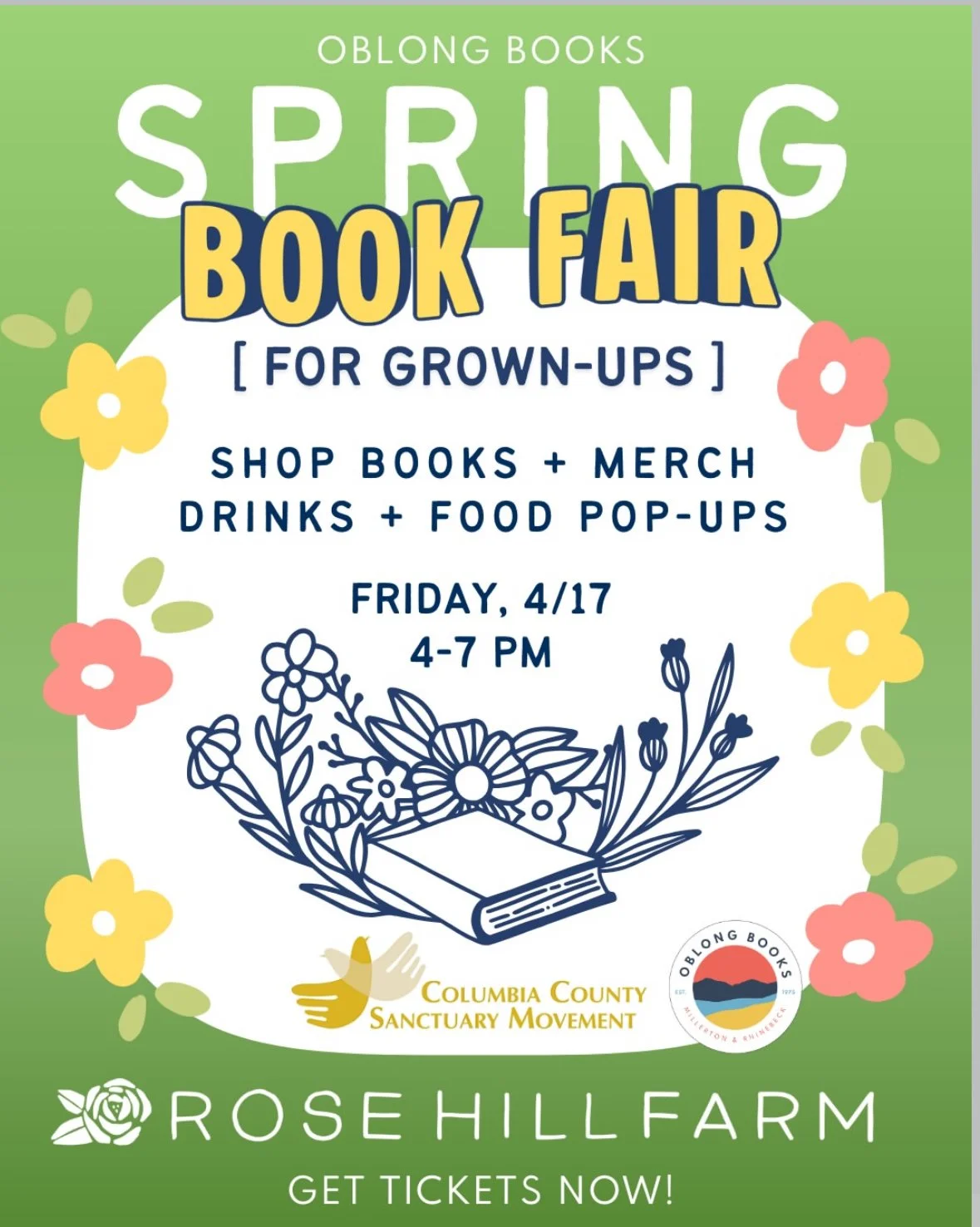 Oblong Book Fair (For Grown Ups!) Friday, April 17, 2026 4:00 PM 7:00 PM 16:00 19:00 Rose Hill Farm 19 Rose Hill Farm Red Hook, NY 12571 (map) Google Calendar ICS